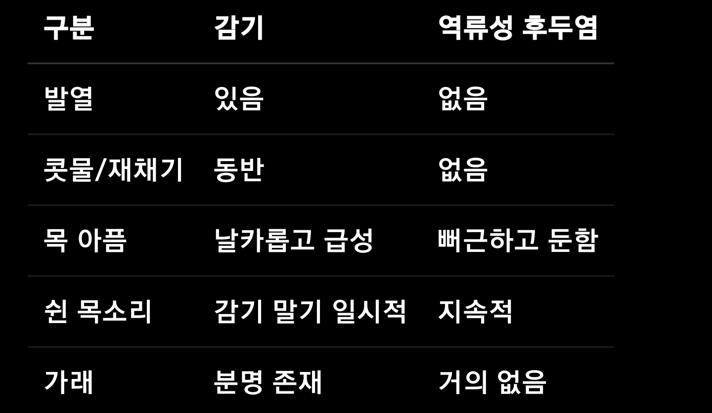 구분 감기 역류성 후두염